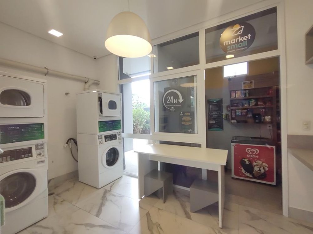 •Cozinha completa: Inclui fogão, micro-ondas, geladeira, freezer e máquina de lavar roupa.