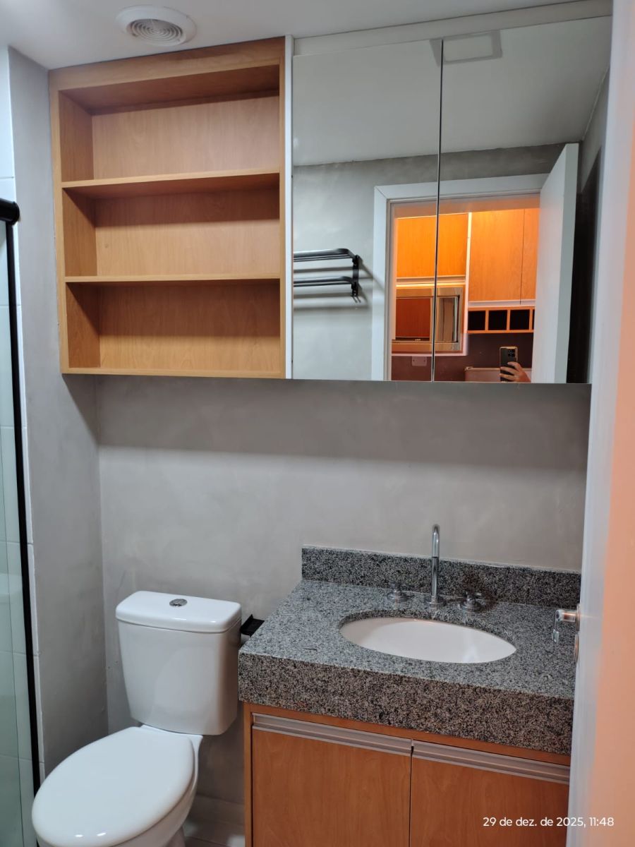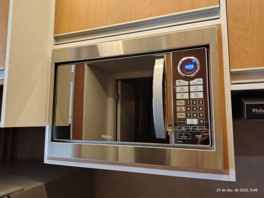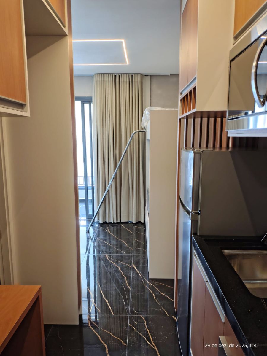 Ideal para quem busca um estilo de vida moderno e funcional, o studio oferece um dormitório elegante, um banheiro bem projetado e uma cozinha equipada com geladeira, fogão de indução, forno elétrico e microondas. A conveniência se estende à presença de ar condicionado e máquina de lavar roupas, garantindo o máximo de conforto no seu dia a dia.